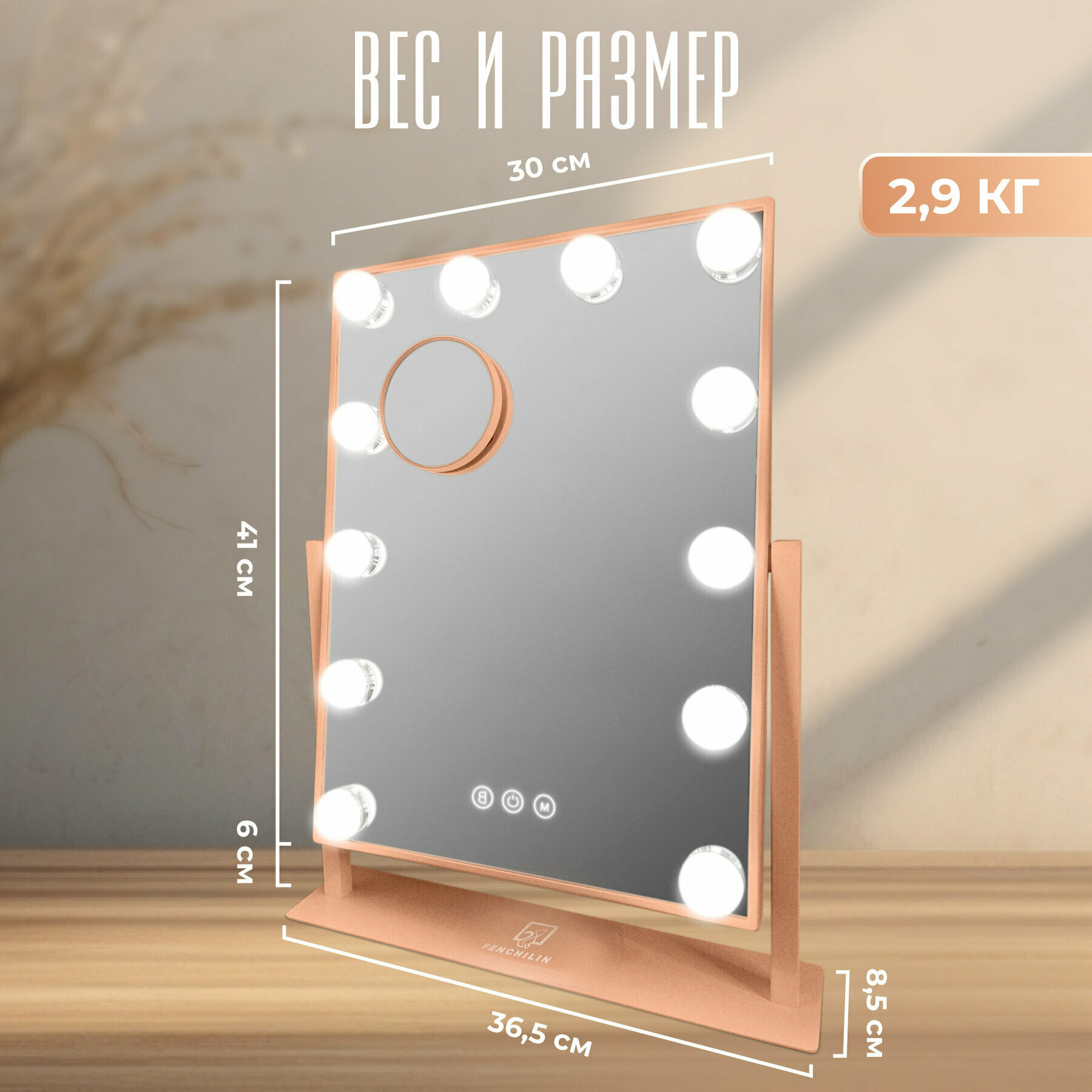 Профессиональное зеркало FENCHILIN HOLLYWOOD DC-117, настольное, с подсветкой, 30х41 см, розовое золото: сравнение цен, характеристики, фото, актуальное наличие и цены.