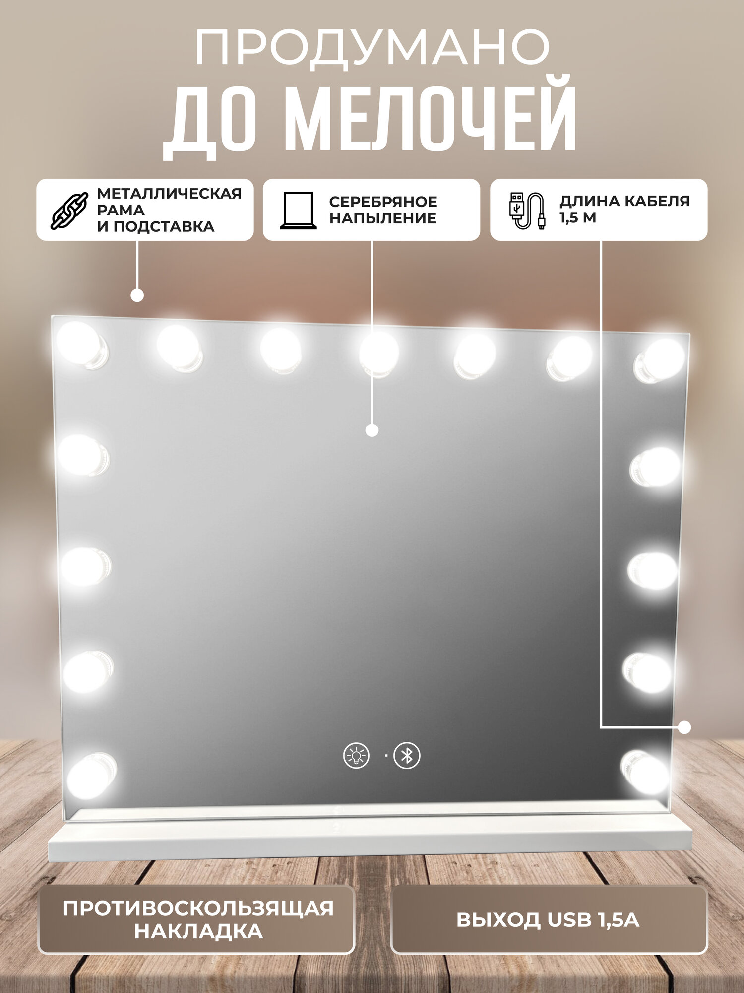 Профессиональное зеркало с подсветкой для макияжа 46х58 см c BLUETOOTH, настольное/настенное, DC117-15B серия HOLLYWOOD от FENCHILIN: сравнение цен, характеристики, фото, актуальное наличие и цены.