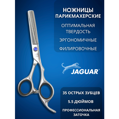 Профессиональные парикмахерские ножницы JAGUAR филировочные размер 5.5. Полотна этих филировочных ножниц имеют 30 зубчиков. Эти ножницы обладают необходимыми характеристиками для профессионалов-винт, обеспечивающий мягкий и плавный ход ножниц и постоянное натяжение полотен, твердость по шкале роквелла 57 единиц