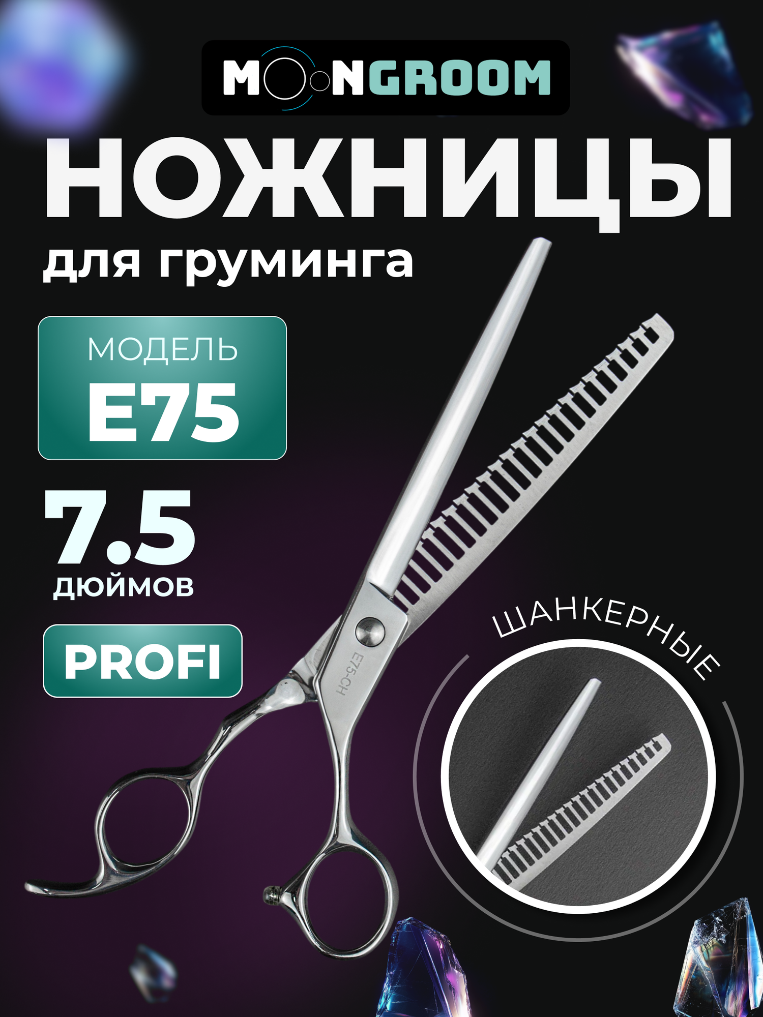 Профессиональные ножницы для груминга MOON PROFI 7.5 E75 шанкерные, ножницы для стрижки кошек и собак: сравнение цен, характеристики, фото, актуальное наличие и цены.