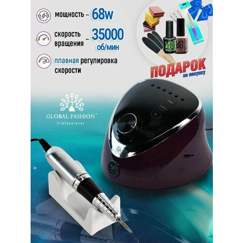 Профессиональный аппарат для маникюра и педикюра М12 от известного бренда Global Fashion прошел испытания и одобрен к использованию мастерами. Достоинствами профессионального аппарата для маникюра и педикюра является встроенная функция отключения аппарата при перезагрузке. Это защищает его от поломок. Прочный механизм фиксации фрезы. Высокая мощность 68 Вт и наличие реверса, обеспечивающего разностороннее движение. Удобная работа с ручкой, которая имеет вес всего 100г и не перегружает руку мастера. Высокая скорость вращения до 35000 оборотов в минуту. Аппарат для маникюра и педикюра Global Fashion М-12 используется и для наращивания ногтей. Изготовлена маникюрная машинка в Китае. Маникюрный набор сочетает в себе разумную цену и отличный функционал. Позволяет непрерывно работать до 12 часов. Полировочная машинка не шумит. Вибрация фрез аппарата для маникюра и педикюра не чувствуется. Аппарат маникюрный и педикюрный позволяет делать чистку, шлифовку ногтей рук и ног, удаление лака и накладных ногтей, подготавливать ногтевые пластины к наращиванию. Особенностью конструкции прибора являются вмонтированные в наконечник бесщеточные микродвигатели. Это решение увеличивает ресурс аппарата, повышает надежность и уменьшает шум. Аппараты для маникюра и педикюра Nail Drill имеют защиту от перегрузок и удобную металлическую ручку. Оригинальный дизайн и цифровая индикация позволяет работать в наиболее комфортном режиме, эффективно выполняя необходимые функции при работе. Машинка М12 поможет Вам идеально обработать карман, сделать снятие покрытия шеллака, безопасно срезать кутикулу, при этом не навредив клиенту. Привыборе маникюрного аппарата необходимо учитывать скорость вращения фрезы. Так как для разных фрез и для разных этапов маникюра/педикюра нужна своя скорость. Следует учесть, что количество оборотов не показывает то, насколько мощный аппарат! В нашем магазине Вы найдете все для маникюра и педикюра – от косметического аппарата, до средств для ухода за кутикулой.