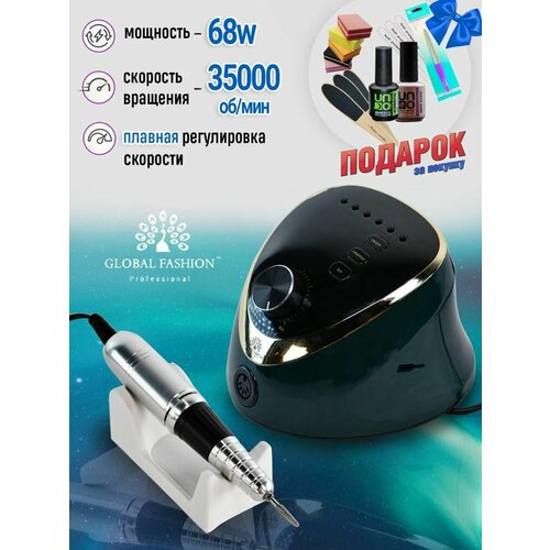 Профессиональный аппарат для маникюра и педикюра М12 от известного бренда Global Fashion прошел испытания и одобрен к использованию мастерами. Достоинствами маникюрного аппарата для маникюра и педикюра является встроенная функция отключения аппарата при перезагрузке. Это защищает его от поломок. Прочный механизм фиксации фрезы. Высокая мощность 68 Вт и наличие реверса, обеспечивающего разностороннее движение. Удобная работа с ручкой, которая имеет вес всего 100г и не перегружает руку мастера. Высокая скорость вращения до 35000 оборотов в минуту. Аппарат для маникюра и педикюра Global Fashion М-12 используется и для наращивания ногтей. Изготовлена маникюрная машинка в Китае. Маникюрный набор сочетает в себе разумную цену и отличный функционал. Позволяет непрерывно работать до 12 часов. Полировочная машинка не шумит. Вибрация фрез аппарата для маникюра и педикюра не чувствуется. Аппарат маникюрный и педикюрный позволяет делать не только чистку и шлифовку ногтей рук и ног. Но и удаление лака и накладных ногтей. Подготавливать ногтевые пластины к наращиванию. Особенностью конструкции прибора являются вмонтированные в наконечник бесщеточные микродвигатели. Это решение увеличивает ресурс аппарата, повышает надежность и уменьшает шум. Аппараты для маникюра и педикюра Nail Drill имеют защиту от перегрузок и удобную металлическую ручку. Оригинальный дизайн и цифровая индикация позволяет работать в наиболее комфортном режиме, эффективно выполняя необходимые функции при работе. Машинка М12 поможет Вам идеально обработать карман, сделать снятие покрытия шеллака. Безопасно срезать кутикулу, при этом не навредив клиенту. При выборе маникюрного аппарата необходимо учитывать скорость вращения фрезы. Так как для разных фрез и для разных этапов маникюра/педикюра нужна своя скорость. Следует учесть, что количество оборотов не показывает то, насколько мощный аппарат! В нашем магазине Вы найдете все для маникюра и педикюра – от косметического аппарата до средств для ухода за кутикулой.