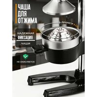 Профессиональный чугунный пресс для цитрусовых и гранатов (соковыжималка) Эта модель пресса предназначена для получения сока из гранатов и любых видов цитрусовых - апельсинов, грейпфрутов, лаймов, лимонов. Корпус изготовлен из комбинированной стали - литого чугуна и нержавеющей стали, что обеспечивает прочность и долговечность изделия. Рычажный механизм - ручка плавно опускается сверху - вниз, что делает процесс отжима сока более комфортным и эффективным. Съемный отжимной конус для удобства очистки позволяет легко и быстро очищать пресс после использования. Объем емкости для сока составляет 0,2 литра, что позволяет получить достаточное количество сока для приготовления напитков или десертов. Цвет товара - черный, что придает ему стильный и современный вид. Подробная комплектация включает в себя пресс для цитрусовых и гранатов, что позволяет сразу приступить к использованию. Дополнительная информация: пресс для цитрусовых и гранатов.