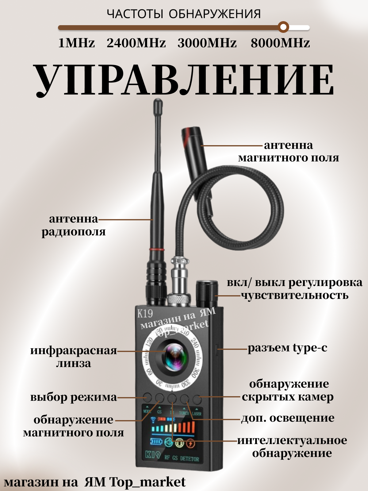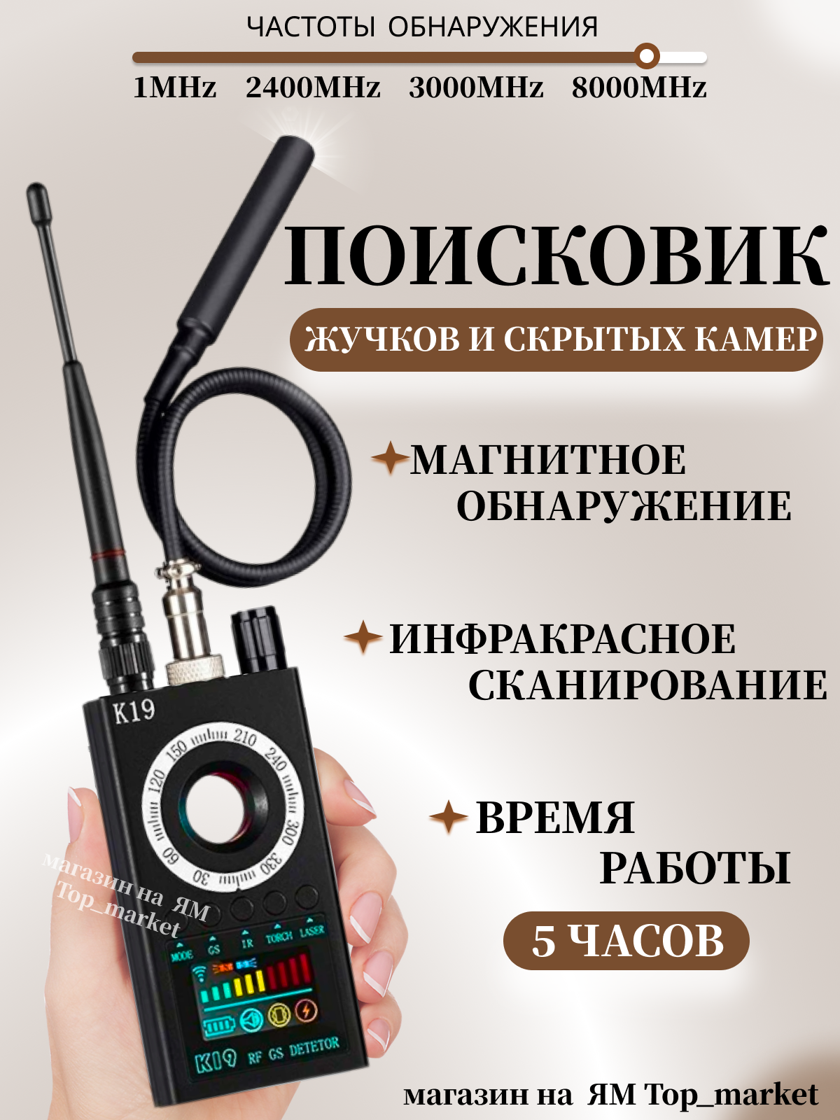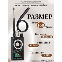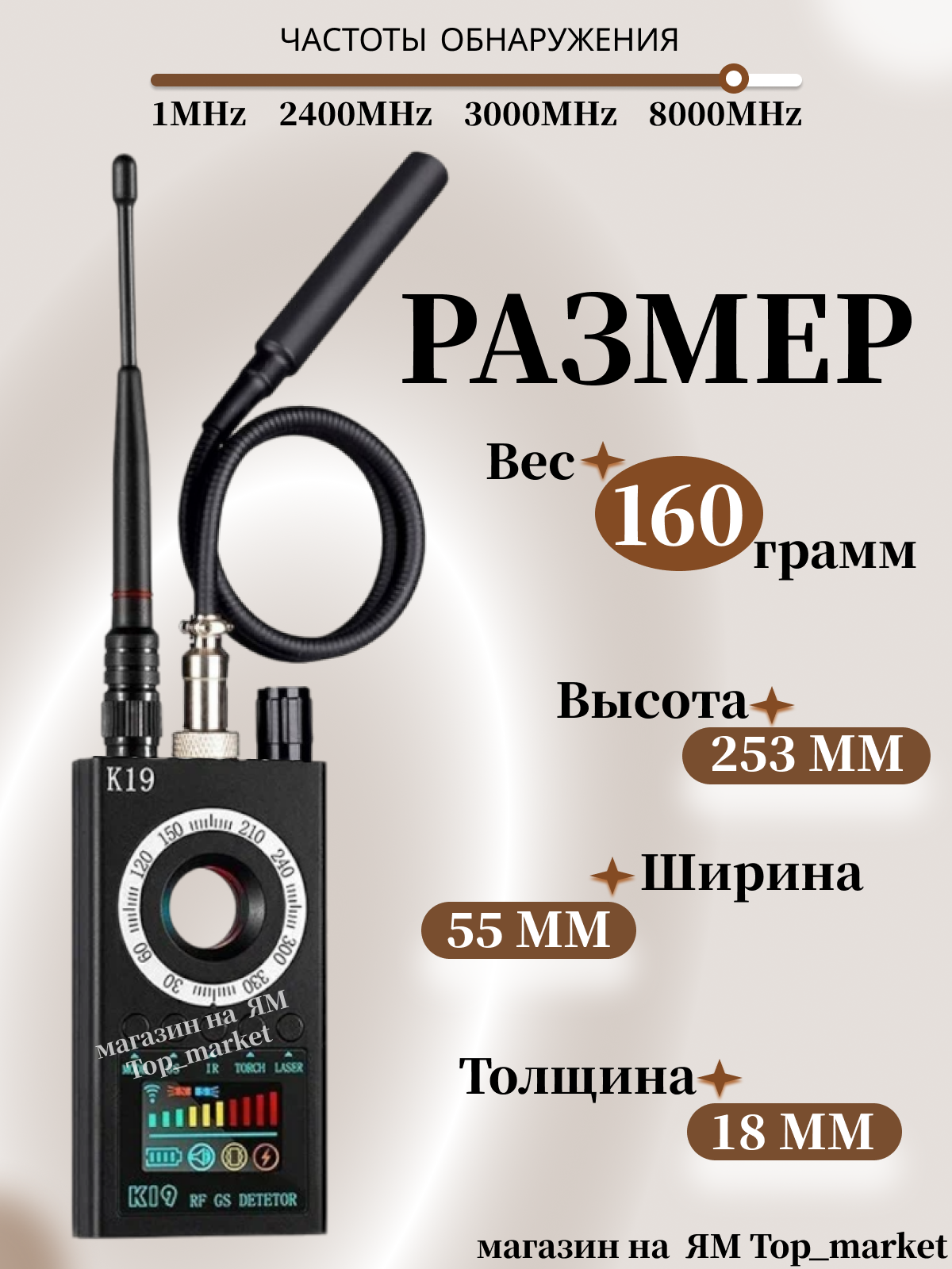 Представляем Вашему вниманию детектор K19, который позволит быстро обнаружить скрытые устройства слежения, будь то миниатюрные камеры или подслушивающие жучки. Благодаря широкому диапазону частот, охватывающему от 1 МГц до 8 ГГц, поисковик способен выявить практически любые радиосигналы, такие как: CDMA, 2G, 3G, 4G, Wi-FI, Bluetooh и GPS. Встроенный аккумулятор емкостью 1000 мАч, обеспечивая до 5 часов непрерывной работы на одном заряде.