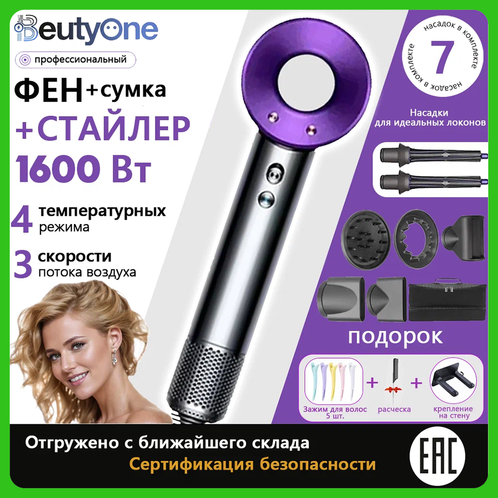 Профессиональный фен для волос beutyone, стайлер для волос, с насадками для укладки, скоростей 3, фиолетовый: сравнение цен, характеристики, фото, актуальное наличие и цены.