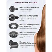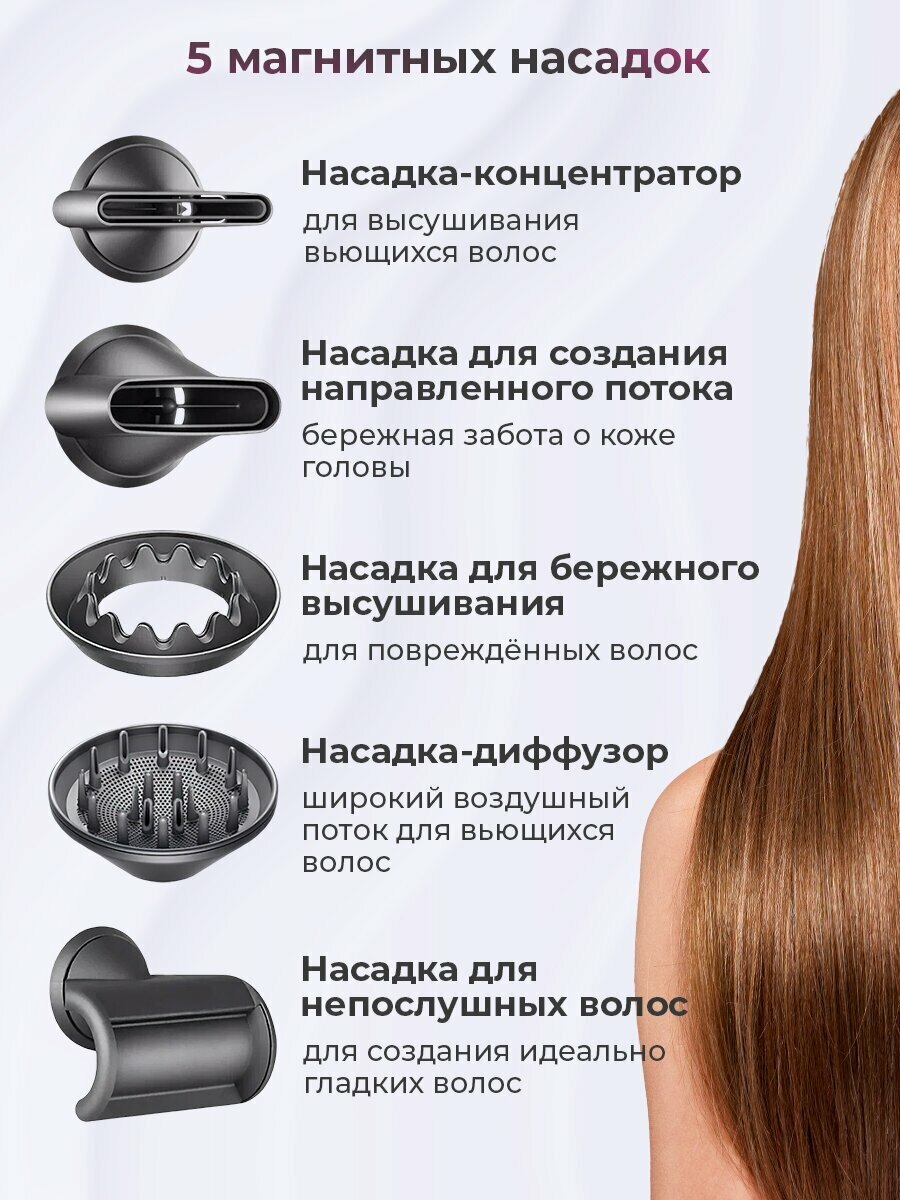 | Насадки | диффузор, для бережного высушивания, для выпрямления, для непослушных волос, концентратор |