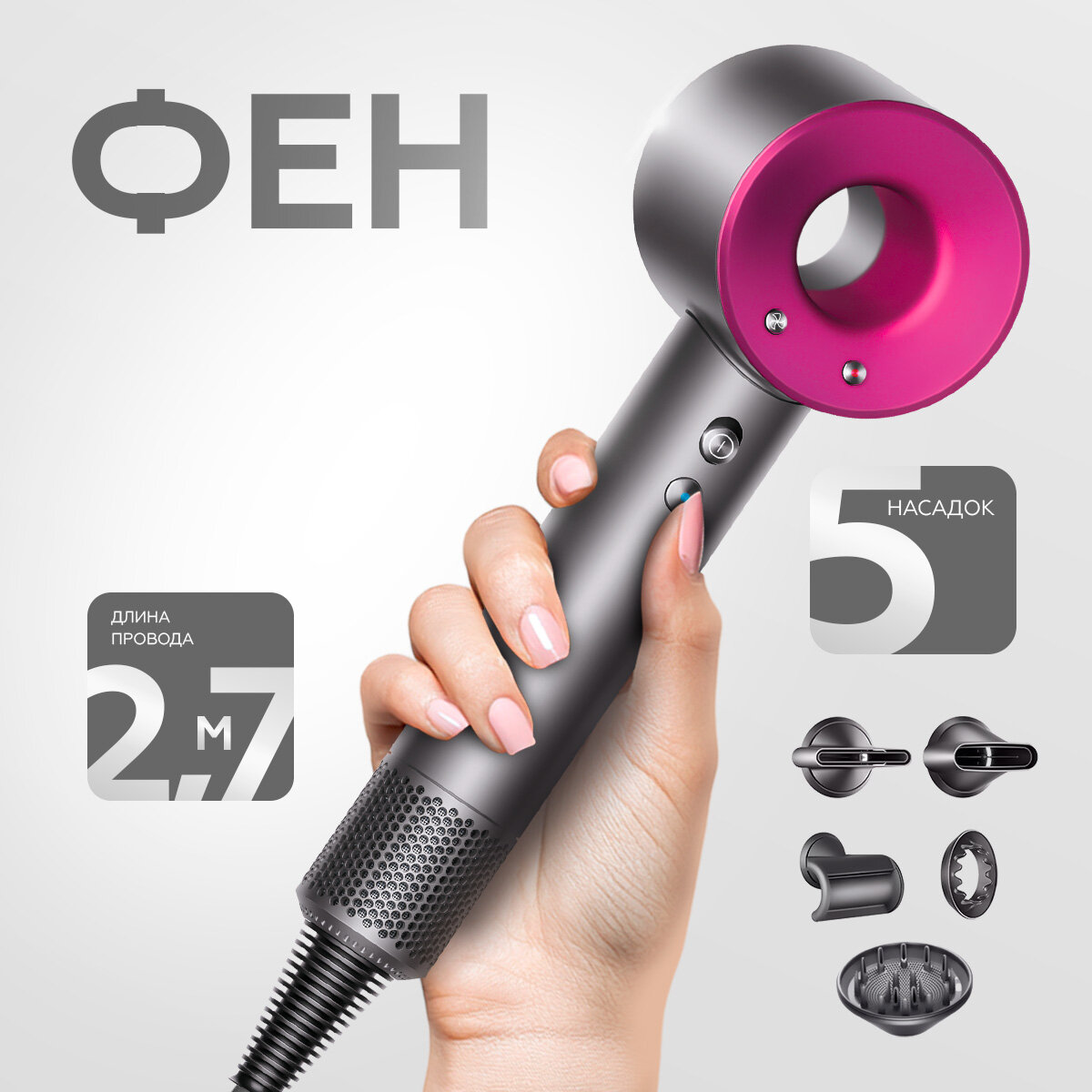 Купить Фен для волос Фен с ионизацией Supersonic Hair Dryer, Профессиональный фен Стайлер для укладки и выпрямления волос 3 режима, 5 магнитных насадок, розовый с доставкой по всей России. Фен для волос Фен с ионизацией Supersonic Hair Dryer, Профессиональный фен Стайлер для укладки и выпрямления волос 3 режима, 5 магнитных насадок, розовый: сравнение цен, характеристики, фото, актуальное наличие и цены.