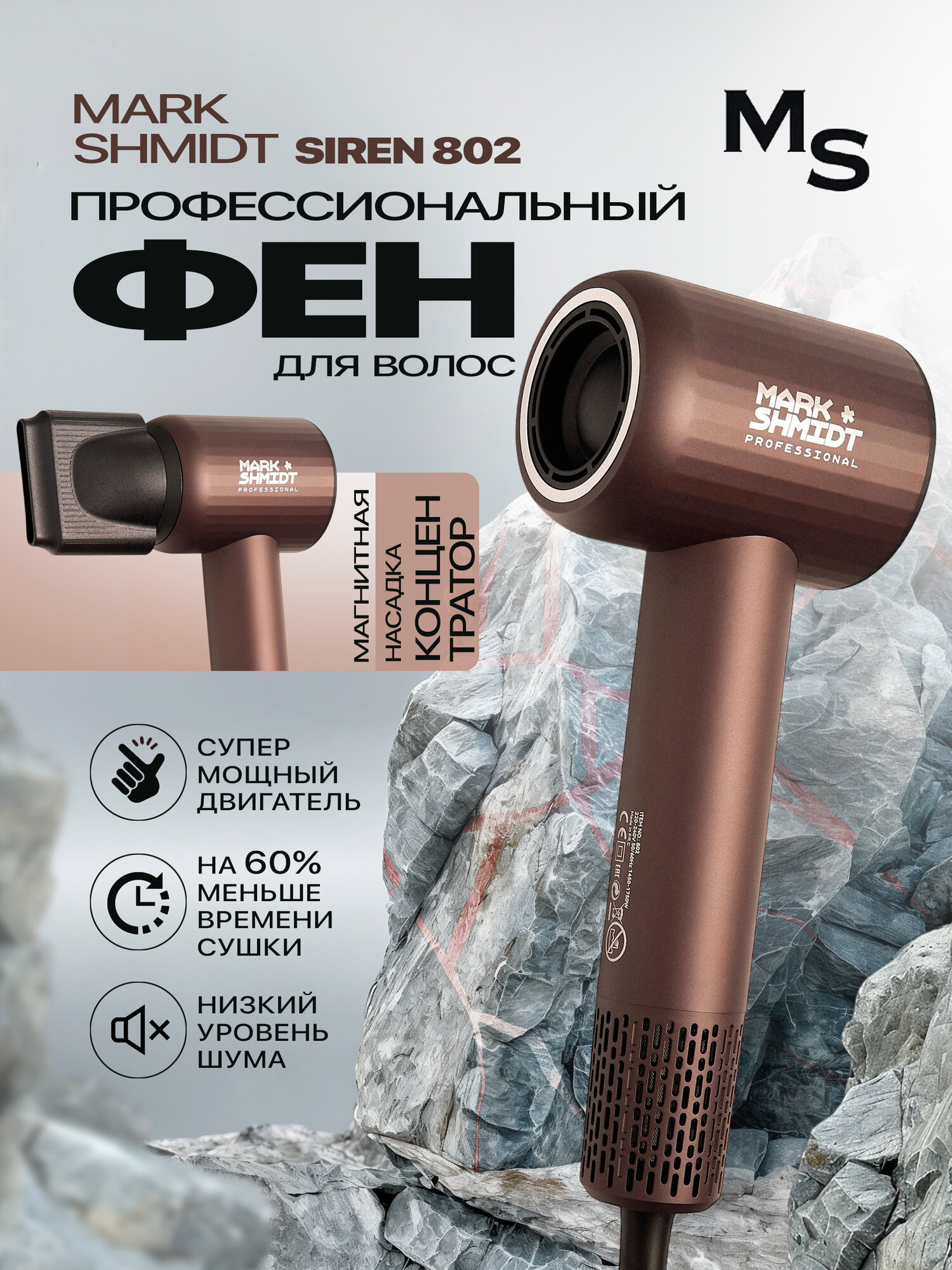Профессиональный фен Mark Shmidt Siren 802, с ионизацией, 2 скорости, 3 режима, коричневый: сравнение цен, характеристики, фото, актуальное наличие и цены.