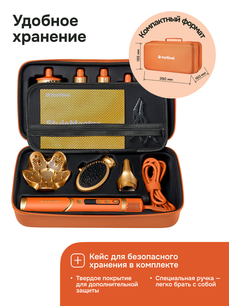 | Подробная комплектация | Мультистайлер — 1 шт. Насадка-диффузор — 1 шт. Насадка-концентратор — 1 шт. Насадка-брашинг 40 мм — 1 шт. Насадка-брашинг 70 мм — 1 шт. Насадки для локонов с эффектом Коанда — 2 шт. Двусторонняя расческа с массажным эффектом — 1 шт. Насадка для устранения пушистости — 1 шт. Твердый кейс для хранения — 1 шт. Зажимы для волос — 2 шт. Руководство по эксплуатации — 1 шт. |