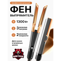Профессиональный фен выпрямитель 2 в 1 для укладки волос, 3 режима, Серый