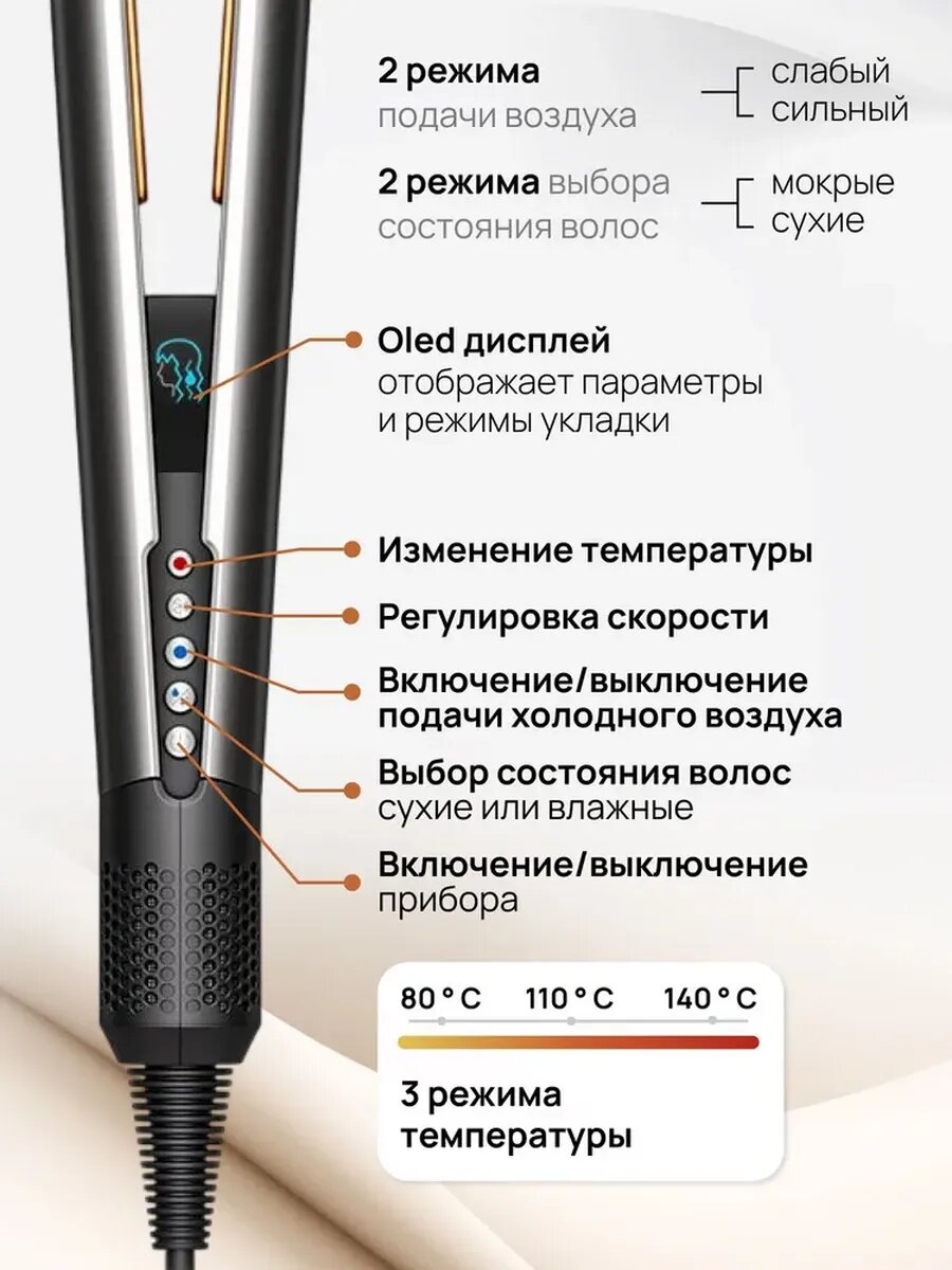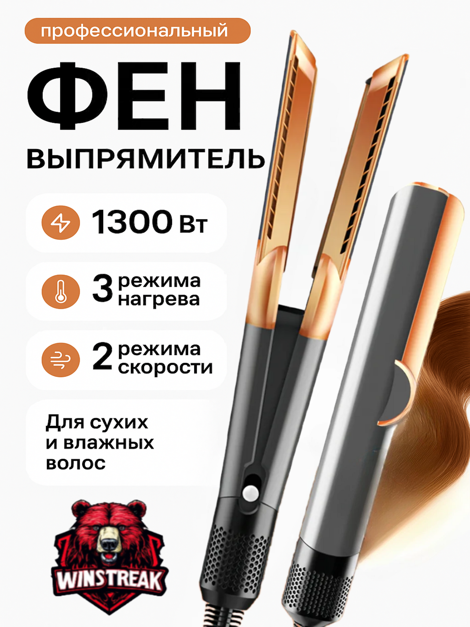 Профессиональный фен выпрямитель 2 в 1 для укладки волос, 3 режима, Серый: сравнение цен, характеристики, фото, актуальное наличие и цены.
