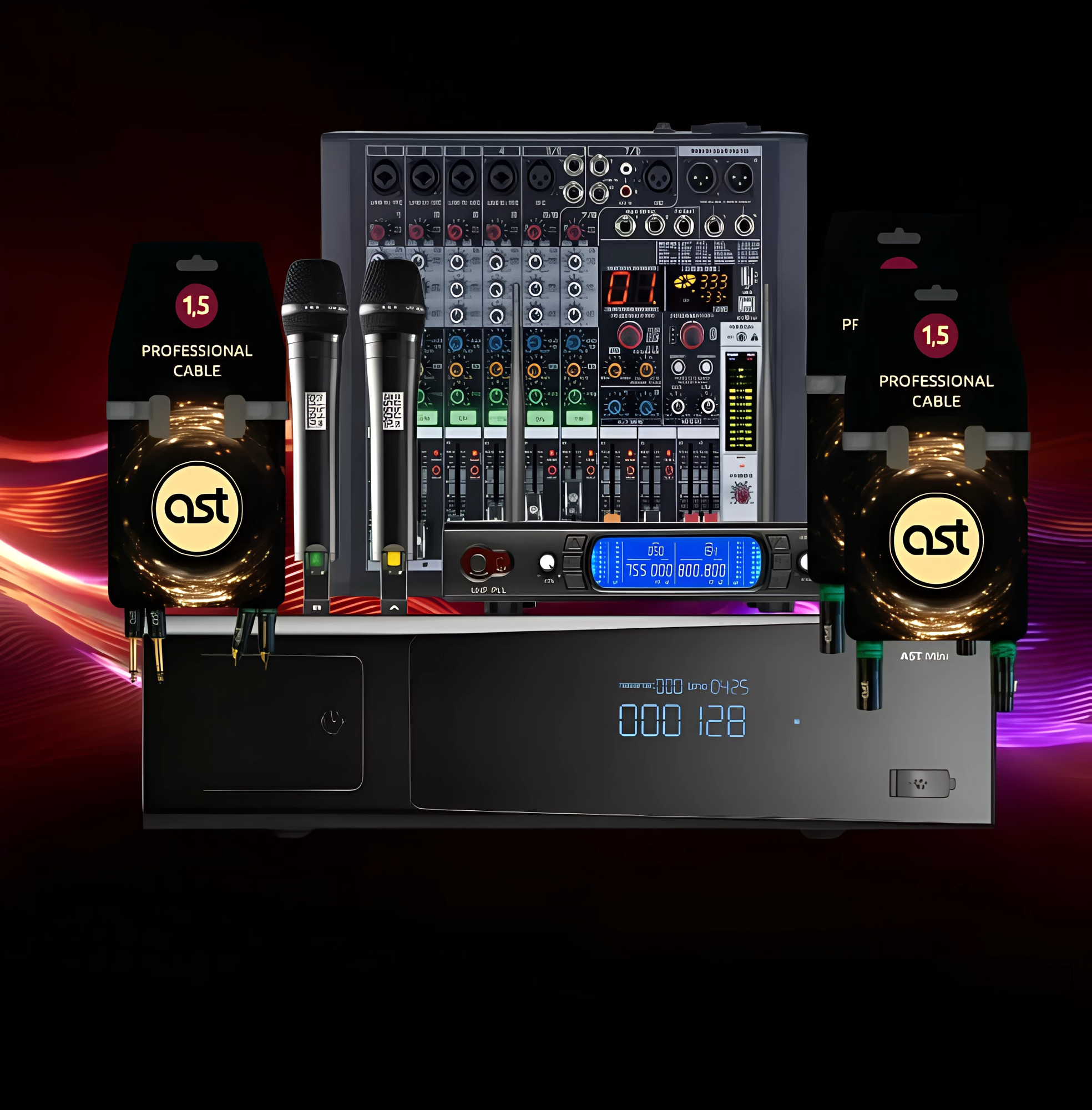 Купить Профессиональный караоке комплект AST mini Edition all c микрофонами AST и аналоговым микшерным пультом MVT AM8M с доставкой по всей России.