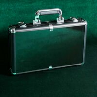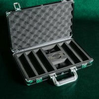 Для фишек диаметром до 43 мм. Кейс на 300-400 фишек. Жесткий с усилением углов и ручки, внутри с ячейками для фишек из материала, который хорошо фиксирует фишки. Имеет 5 отделений для фишек 217х43 мм и 2 отделения для карт или для фишек 95х65 мм. Черный цвет, хромированные замки и ручка. Профессиональный кейс готов к частым поездкам и перевозке совсем не легких фишек (вес наборов от 6 кг до 11 кг). Во время транспортировки ваши фишки и содержимое кейса в безопасности, так как специальный материал держит плотно содержимое кейса. По приезду вам не нужно будет доставать все фишки и раскладывать их по номиналам, как положили, так все и будет лежать на своих местах. Это лучший кейс для хранения и переноски фишек!