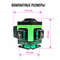 Представляем вам новую модель построителя лазерных плоскостей LT серии А 12 линий 360 градусов с японскими светодиодами SHARP. Уровень выстраивает 3 плоскости в 360 градусов (в круговую): - 2 вертикальные плоскости 360 градусов с пересечением под прямым углом 90 градусов-.1 горизонтальная линии 360 градусов снизу уровня. Нижний горизонт идеально подходит для работ по заливки полов и стяжки. Работает от Аккумулятор литий-ионный Li-Ion 6000 Мач (в комплекте идёт одна батарея) с зарядным устройством. Зарядное устройство USB. Наши устройства можно заряжать во время эксплуатации как от блока питания, так и от power bank. Особенности: - До 8 часов работы при постоянном свечение луча. - Лучи включаются как с сенсорных кнопок на корпусе устройства, так и с пульта дистанционного управления. - Зеленый цвет луча лучше виден на свету и менее вреден для глаз. Дальность до 50 метров (в зависимости от освещения). При помощи приемника (отражателя) лазерных лучей (приобретается отдельно) можно работать в солнечную погоду. - Противоударная и влагозащитная сумка для переноски устройства. Все наши уровни проходят трехступенчатый контроль проверки качества сборки на заводе-производителе и инспекционный контроль приемки товара. Калибровка устройств производится на заводе с помощью специального оборудования, сертифицированного по международным стандартам и только специалистами самого высокого уровня допуска. Дополнительно, мы самостоятельно проверяем каждое устройство перед отправкой нашим покупателям. Мы даем 100% гарантию на ровность вертикалей и горизонталей. Внимание! Цвет аксессуаров может отличаться от фото! Комплектация: 1. Профессиональный лазерный уровень с двумя вертикальными и одним горизонтальным лучом в 360 градусов (Вкруговую).2. Аккумулятор литий-ионный Li-Ion 1 штука 6000 мач. с индикатором заряда.4. Противоударная транспортировочная сумка. 5 Зарядное устройство USB. Пульт дистанционного управления. Руководство по эксплуатации изделия и условия гарантийных обязательств, гарантийный талон.