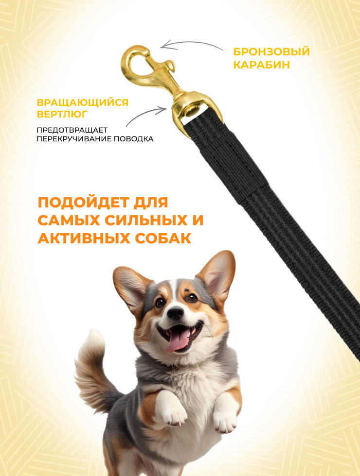 Предназначен для дрессировки собак, а также для повседневного использования. Выдерживает нагрузку до 300 кг, поэтому подойдет для самых сильных и активных собак средних и крупны пород. Не скользит, не «обжигает» руки. Вращающийся вертлюг карабина предотвращает перекручивание поводка. Бронзовый карабин не замерзает, не раскалывается и не клинит на морозе. Материал: нейлон, латекс, бронзовый карабин.