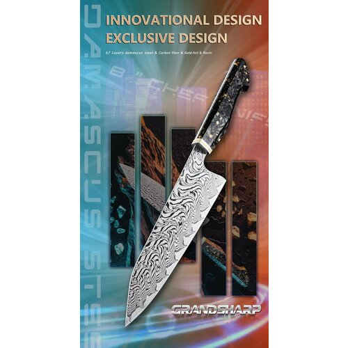 Купить Профессиональный шеф нож из дамасской стали GRANDSHARP с доставкой по всей России. Профессиональный шеф нож из дамасской стали GRANDSHARP: сравнение цен, характеристики, фото, актуальное наличие и цены.