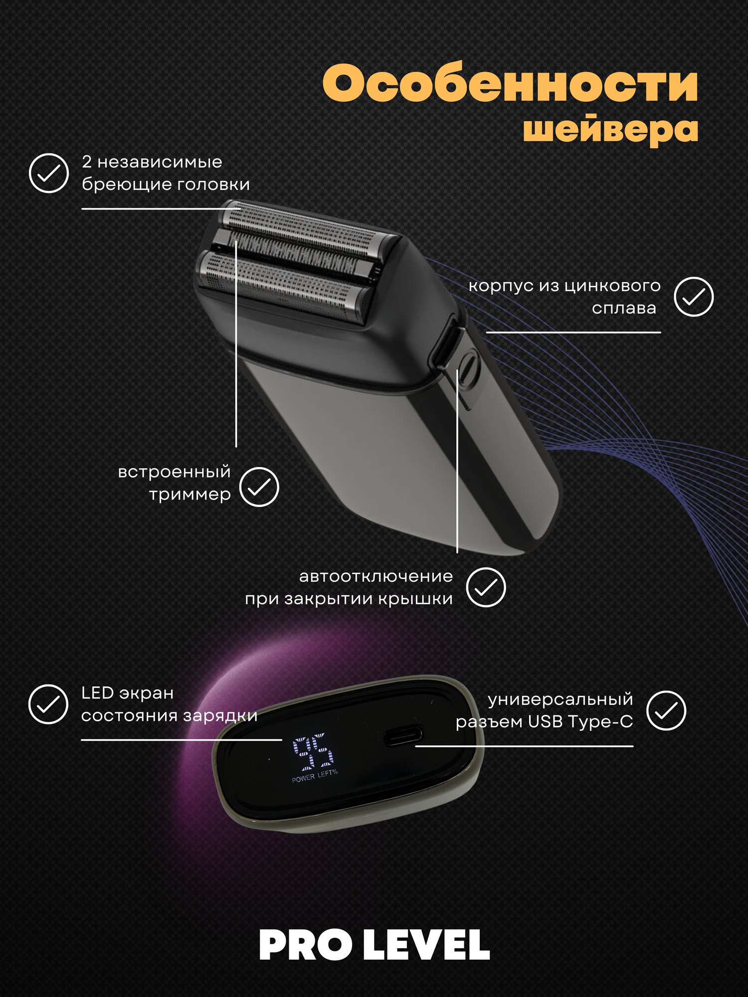 Мощный роторный мотор на 8000 оборотов в минуту и аккумулятор ёмкостью 1400 mAh позволяют использовать электрическую бритву как от сети, так и в беспроводном режиме до 120 минут. LED-дисплей с индикатором заряда аккумулятора и функция автоотключения при закрытии крышки делают использование устройства ещё удобнее и безопаснее. Корпус из цинкового сплава с влагозащитой IPX5 гарантирует долговечность и комфорт даже во влажной ванной комнате.