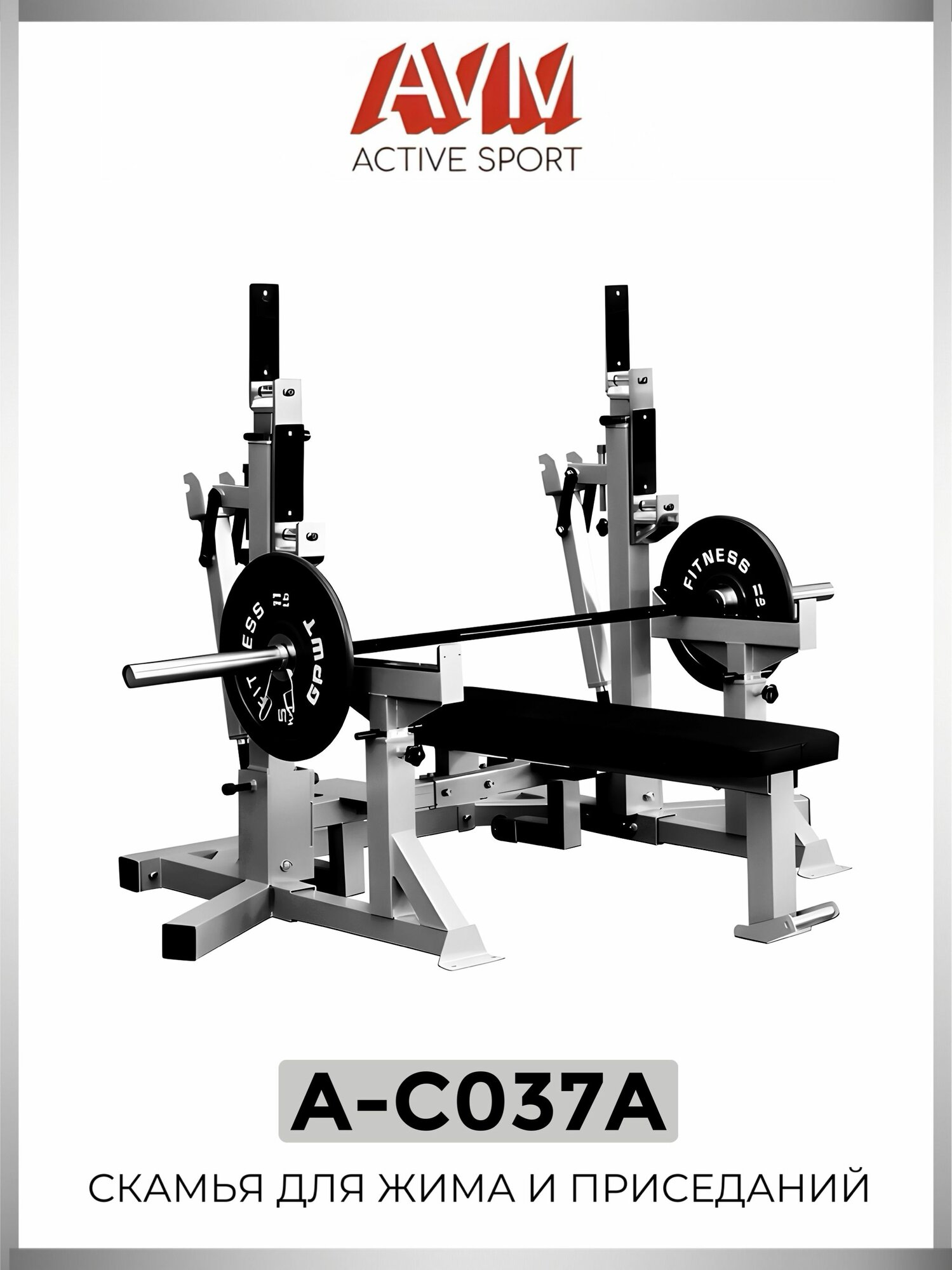 Профессиональный тренажер для зала Скамья для жима и приседаний AVM A-C037А (цвет профиля чёрный, цвет обивки черный): сравнение цен, характеристики, фото, актуальное наличие и цены.