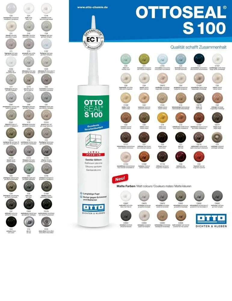 Профессиональный универсальный силиконовый герметик OTTOSEAL S100 PREMIUM С18 (саниторно-серый), 300мл: сравнение цен, характеристики, фото, актуальное наличие и цены.
