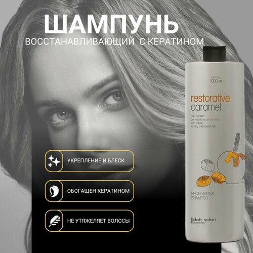Профессиональный восстанавливающий шампунь с кератином и коллагеном для сухих и поврежденных волос, CARAMEL PROFESSIONAL LINE, 1000 мл / Dott. Solari Cosmetics / Италия: сравнение цен, характеристики, фото, актуальное наличие и цены.