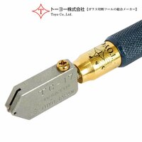 Подробнее о стеклорезе. В верхней части ручки имеется резьбовая заглушка, через которую заливается масло. Широкая головка ТС-17 является универсальной. Расстояние от края головки до режущего ролика 2,5 мм. Ресурс работы ролика стеклореза — не менее 30 000 м (при соблюдении условий резки и наличия смазки). Угол заточки 138°. Японская фирма TOYO, известная производством шин и сложного электронного оборудования, занимается также изготовлением некоторого инструмента для обработки стекла, такого как, стеклорезы, стеклоломы, ст. циркули. Стеклорез профессиональный, снабжен резервуаром для хранения масла и специальным каналом для подачи этого масла к режущему ролику. Сам ролик выполнен из специального твердого сплава покрытый алмазным напылением и имеет строго определенный угол заточки. Каждый вид стеклореза рассчитан на определенную толщину стекла, как правило, от 2 до 10, от 10 до 19, от 19 до 25мм. Казалось бы, сделать такой стеклорез при наличии не очень сложного оборудования достаточно просто, ведь твердосплавные ролики можно купить без всяких проблем. Однако Китай, известный хорошими копиями, хотя и делает очень похожие инструменты (которые часто продаются в магазинах и стоят копейки), но любой резчик стекла после первой проверки сразу скажет какой из них настоящий. Масляный стеклорез отличается от простого ответственным процессом — смазка ролика и с его свободное вращение. Подача масла из ручки должна осуществляться только в момент нажима на стекло (при условии, что масло специальное, а не любое другое, в крайнем случае, можно использовать лишь керосин), масло должно смазывать сам ролик и ось ролика. При этом слышен характерный звук реза. Специалист определит качество инструмента только по этому звуку. Производитель гарантирует качественный рез (при наличии оригинального масла) – не менее 30 километров. Излишне говорить, что китайские подделки не проработают и 300 метров.