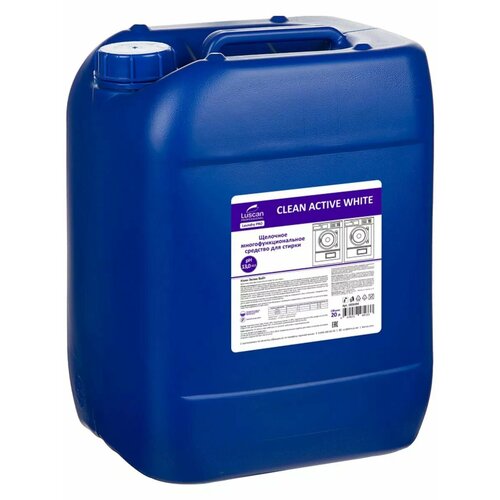 Жидкое средство для стирки щелочное Luscan Professional Clean Active White 20 л (концентрат)Область применения: для стирки изделий из хлопка и смесовых тканей в профессиональных прачечных и химчистках, прачечных ЛПУ и перинатальных центров, детских учреждений, гостиниц, кемпингов, общежитий, прачечных общественного питания, пищевой и перерабатывающей промышленности, предприятий АПК, фармацевтических и биологических предприятий. Применяется в качестве основного препарата для стирки белых и цветных тканей.Свойства: высококонцентрированная формула эффективно удаляет масляные загрязнения различного характера, оптимальная смесь ПАВ эмульгирует загрязнения и жиры в раствор, препятствуя обратному осаждению на поверхность ткани. Обладает выраженным обезжиривающим действием. После использования оставляет антиресорбирующую пленку на поверхности ткани, уменьшает повторное осаждение грязи на поверхность в процессе использования.Способ применения: для автоматической дозации. Дозировка определяется в зависимости от жесткости воды, характера загрязнения и типа ткани.Состав: подготовленная вода более 30%, гидроксид натрия 15-30%, гидроксид калия 5-15%, фосфонаты 5-15%, глда 5-15%, диспергаторы менее 5%, низкопенный неионогенный ПАВ менее 5%.Условия хранения: хранить в плотно закрытой оригинальной упаковке производителя, при температуре от +5 °С до +30 °С в темном сухом недоступном для детей и животных месте, отдельно от пищевых продуктов. Не допускать длительного замораживания и попадания прямых солнечных лучей.Меры предосторожности: не смешивать с препаратами других торговых марок! Использовать защитные перчатки, очки и респиратор. Избегать попадания средства в глаза и на кожу. При попадании на слизистые промыть большим количеством воды. При необходимости обратиться к врачу. Не допускать попадания большого количества продукта в почву, сточные, грунтовые и поверхностные воды.