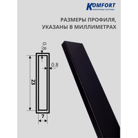 Возможна погрешность В длине профиля ± 3 мм. Профиль для москитной сетки поперечный алюминиевый высотой 23 мм и шириной 7 мм (импост, поперечина) - это элемент, необходимый для установки москитной сетки на окнах, размещается в середине рамы. Поперечный алюминиевый профиль для москитной сетки: придает жесткость и не дает деформироваться профилю рамной москитной сетки; предотвращает стягивание полотном рамочного профиля внутрь сохраняя геометрию; обеспечивает плотность прилегания к световому проему и надежность антимоскитного изделия. Профиль выполнен из высококачественного алюминия, что гарантирует его долговечность и устойчивость к воздействию внешних факторов. Не ржавеет и устойчив к коррозии. Прочный - не деформируется под воздействием перепадов температур, осадков, солнечных лучей. Легко монтируется без использования дополнительных инструментов, обеспечивая защиту от насекомых и комаров в вашем доме. Страна производства Россия.