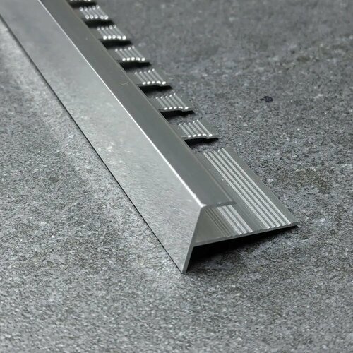 Профиль F-образный алюминиевый анодированный для плитки 8мм 2,7м, Серебро глянец - это высококачественный продукт, который предназначен для финишной отделки внешних углов плитки. Он служит не только для эстетического вида, но и для укрепления угловых соединений, предохраняя их от различных механических повреждений.