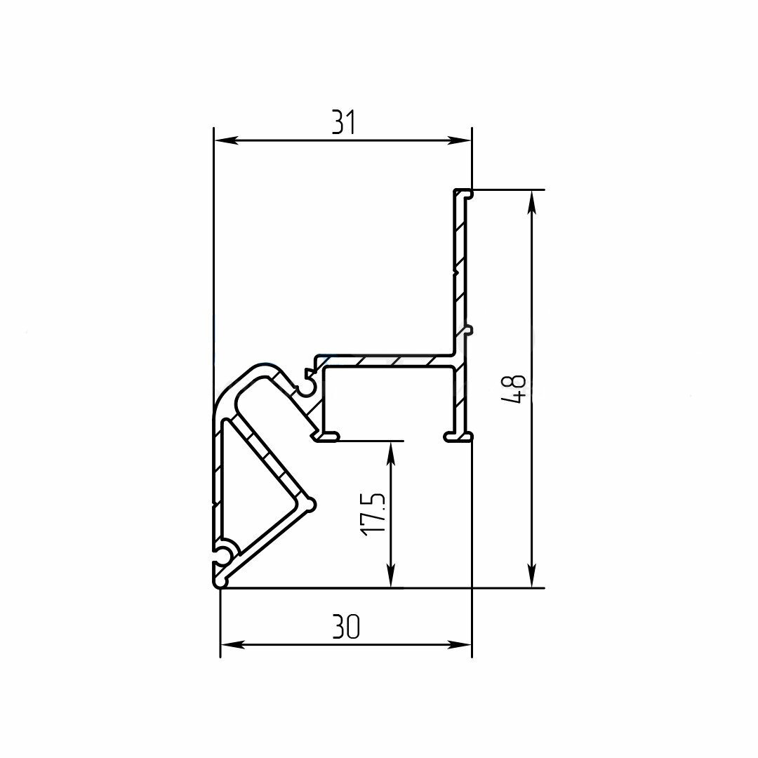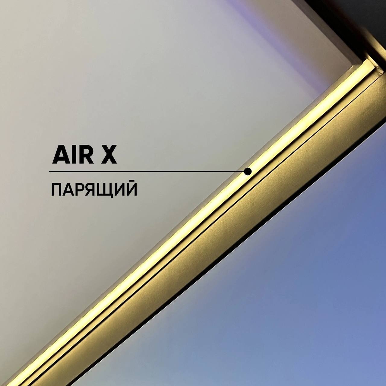 AIR X (Уклонно-парящий)Алюминиевый профиль для монтажа натяжного потолка из ПВХ пленки на гарпунной системе крепления с возможностью организации парящего эффекта с подсветкой вдоль периметра помещения.