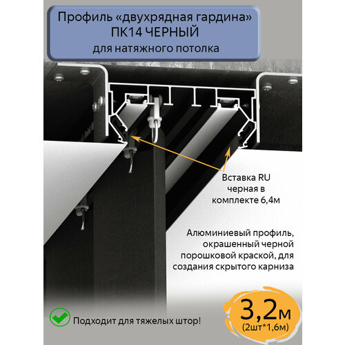 Купить Профиль ПК14 «двухрядная гардина» черный для натяжного потолка, 3,2 (2шт*1,6м) с доставкой по всей России. Профиль ПК14 «двухрядная гардина» черный для натяжного потолка, 3,2 (2шт*1,6м): сравнение цен, характеристики, фото, актуальное наличие и цены.