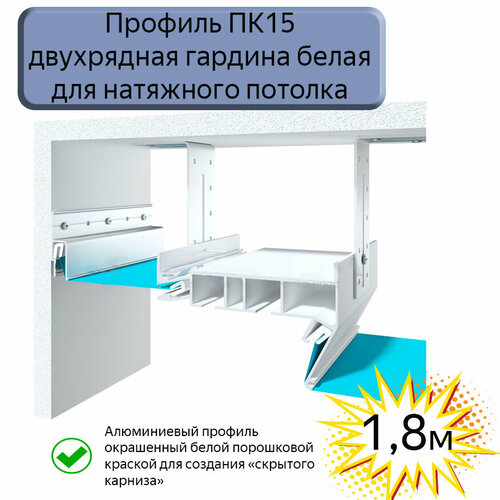 Купить Профиль ПК15 двухрядная гардина белая для натяжного потолка, 1.8м с доставкой по всей России. Профиль ПК15 двухрядная гардина белая для натяжного потолка, 1.8м: сравнение цен, характеристики, фото, актуальное наличие и цены.