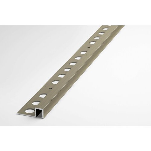 Профиль квадратной конфигурации. Предназначен для отделки наружной кромки керамической плитки, а также отделки стыков с комбинированным покрытием. Устанавливается под плитку. Толщина плитки - до 10 мм. Ширина - 10 мм.