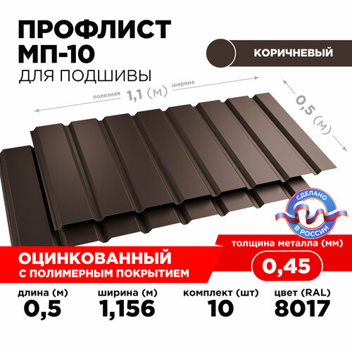 Профнастил МП-10А. Для подшивки кровли 10 листов. Толщина 0.45. Длина листа 0.5. RAL 8017 Шоколад: сравнение цен, характеристики, фото, актуальное наличие и цены.