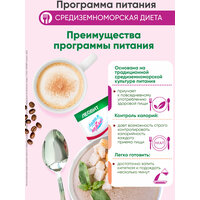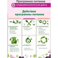 Программа здорового питания для похудения «Средиземноморское меню» – вкусное и полезное диетическое меню, разработанное для плавного и комфортного снижения веса. Все блюда быстрого приготовления в составе этого меню входят в низкокалорийную диету. Активные компоненты в составе этой еды регулируют жировой обмен в организме, за две недели вы сможете сбросить минимум 4,7 кг. Также они могут послужить профилактике сердечно-сосудистых заболеваний, в меню много овощей, а также витаминов и микроэлементов для похудения. Блюда представлены в виде сухих смесей, еду быстрого приготовления очень легко готовить. Содержимое пакетиков заваривается кипятком, несколько минут и готово. Также в составе чай, кофе и кисели, помогающие детоксикации организма и снижению веса.