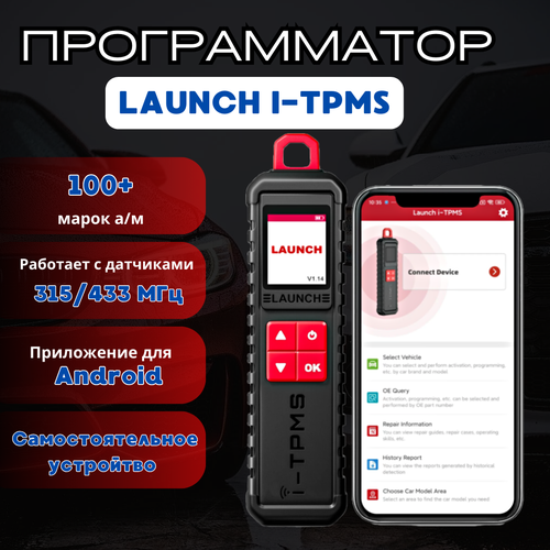 Launch i-TPMS поддерживает: • Функция активации / замены датчиков давления в шинах. • Функция чтения параметров датчика шин TPMS (идентификатора, температуры, давления, состояния аккумулятора). • Функция программирования и обучения универсальных датчиков Launch TPMS. • Работу с датчиками 315/433 МГц. • 100+ марок автомобилей для программирования датчиков TPMS. • Чтение / Удаление ошибок в системе TPMS. • Мобильное приложение для Android устройств. • Совместим с автосканерами Launch X-431 (Pro, Pro3, PAD V, PAD VII).