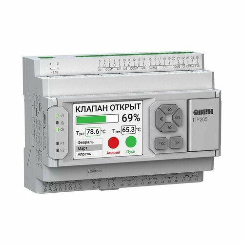 ПР205 – новое программируемое реле с графическим дисплеем и Ethernet. Прибор сочетает в себе оптимальную конфигурацию аналоговых и дискретных входов/выходов для управления системами вентиляции, отопления, кондиционирования и др. При необходимости количество входов/выходов можно увеличить с помощью модулей расширения ПРМ.
