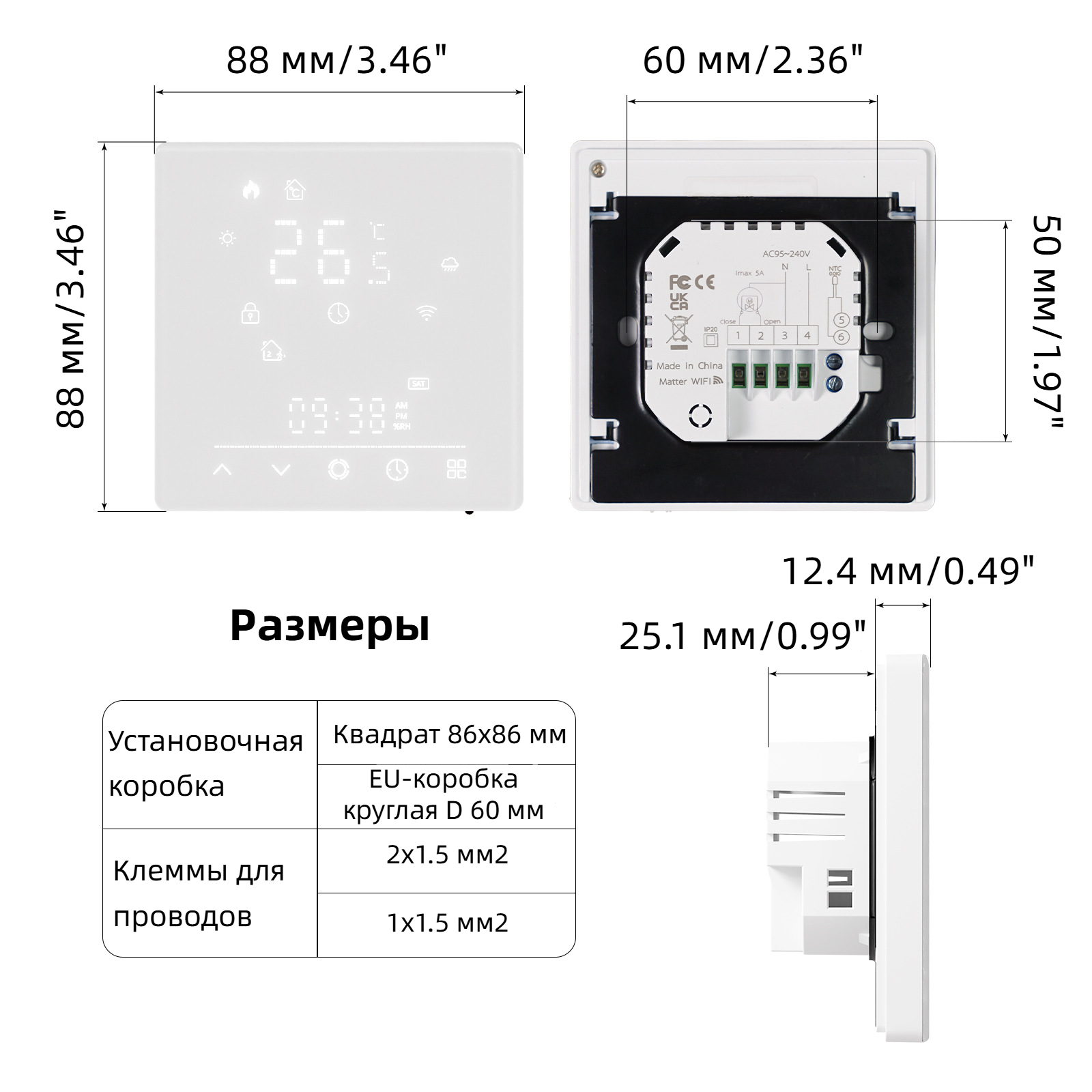 Программируемый термостат Moes WHT-006-GB-WH WiFi для электрического пола, GB, Wi-Fi Electric Floor Heating,16A, белый: сравнение цен, характеристики, фото, актуальное наличие и цены.