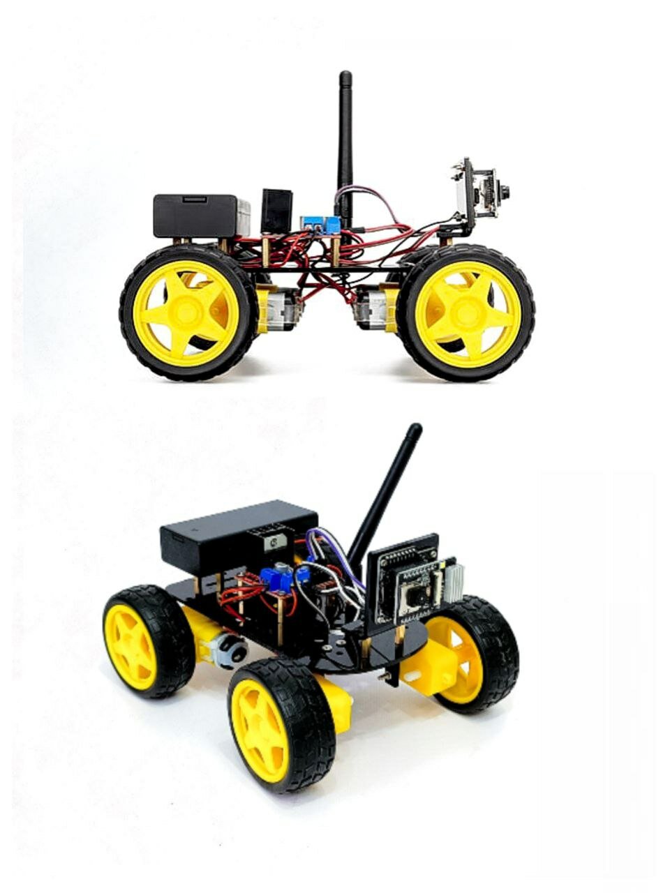 Робот спроектирован на базе чипа ESP32-S совмещенного с камерой OV2640 UXGA (1632*1232). Электронный модуль робота также снабжен несколькими портами GPIO для подключения периферийных устройств.