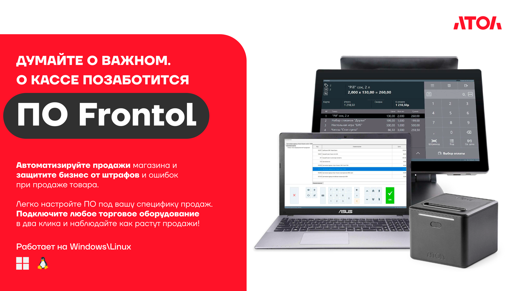 | Дополнительная информация | Frontol xPOS 3 (тариф «Полный»), Frontol 6 (тариф « Полный») |