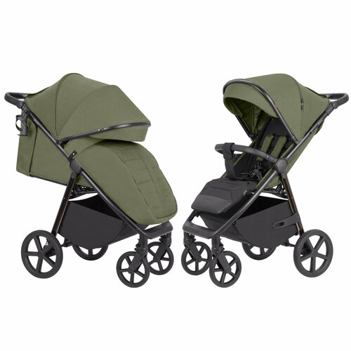 Большие колеса с мягкой амортизацией и компактное складывание обеспечивают комфортное и плавное движение на различных поверхностях.