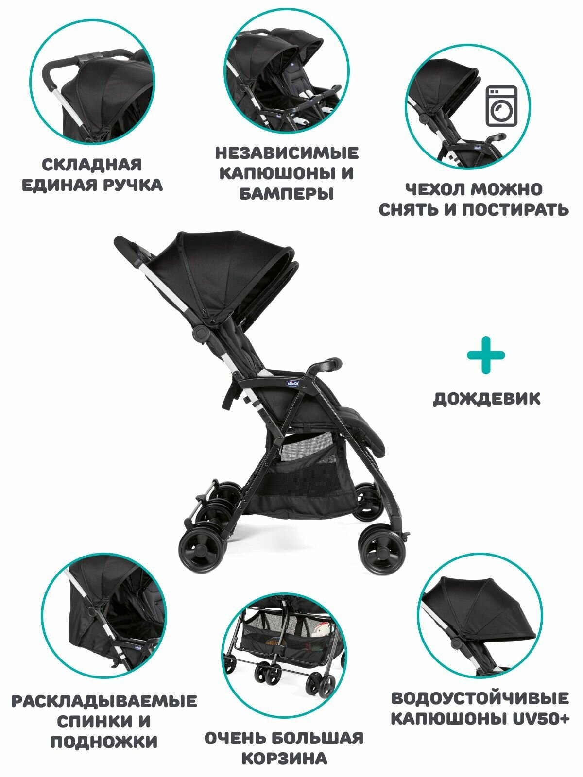 Прогулочная коляска для двойни Chicco Ohlala Twin от 0 месяцев до 3 лет Black Night: сравнение цен, характеристики, фото, актуальное наличие и цены.