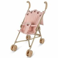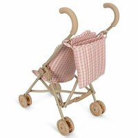 Коляска для кукол Konges Slojd оснащена ремнем безопасности, сумкой и двойными колесами на всех четырех ножках для дополнительной устойчивости.