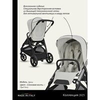 -Для прогулок в теплое время года сиденье оснащено двойной дышащей сеткой, которая пропускает воздух и способствует терморегуляции.
