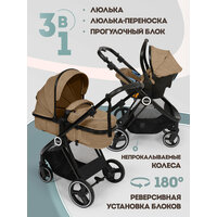 Прогулочная коляска Nuovita "3 в 1", кофейный, всесезон, 0-3 лет