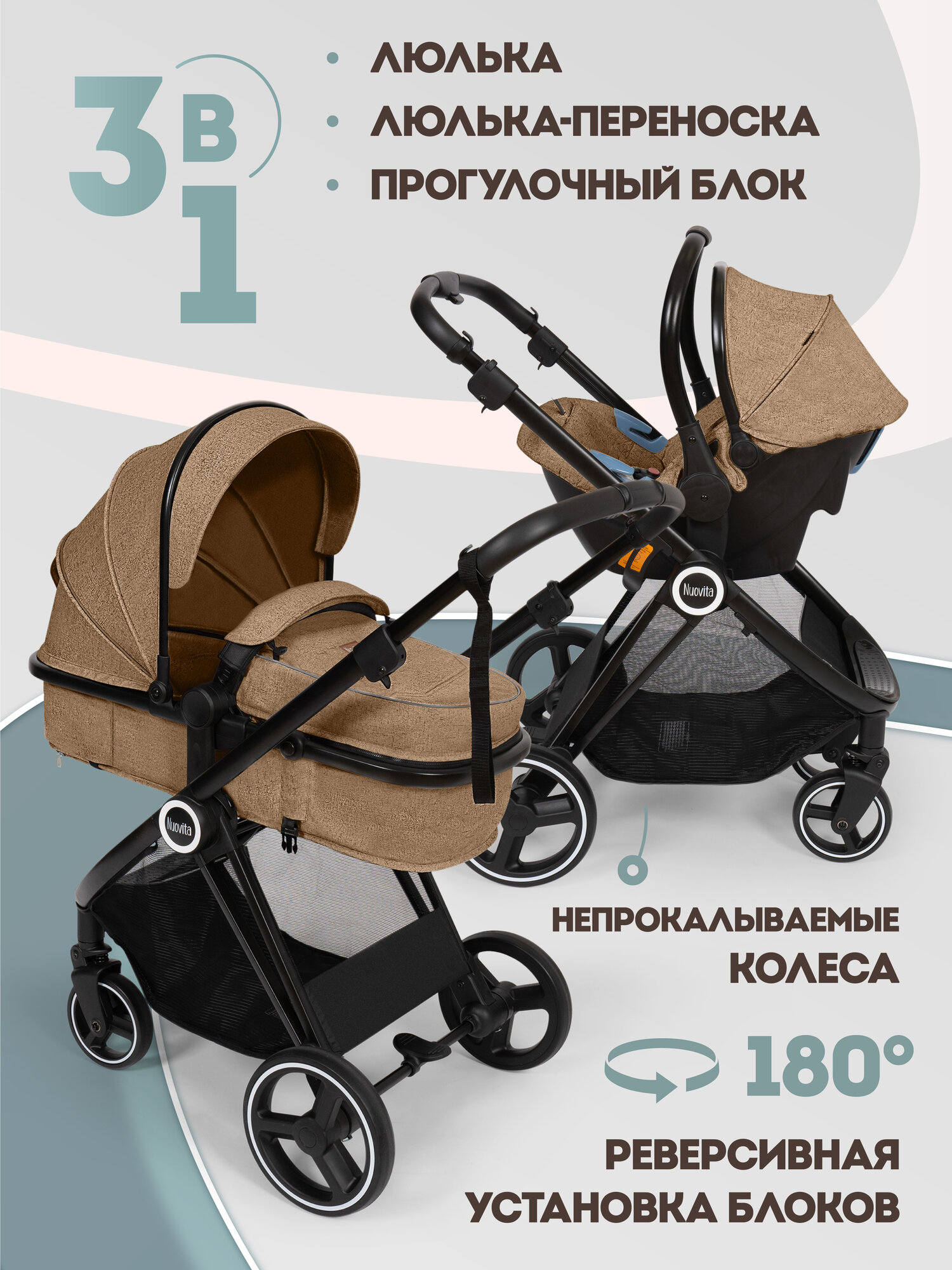 Купить Прогулочная коляска Nuovita «3 в 1», кофейный, всесезон, 0-3 лет с доставкой по всей России. Прогулочная коляска Nuovita «3 в 1», кофейный, всесезон, 0-3 лет: сравнение цен, характеристики, фото, актуальное наличие и цены.