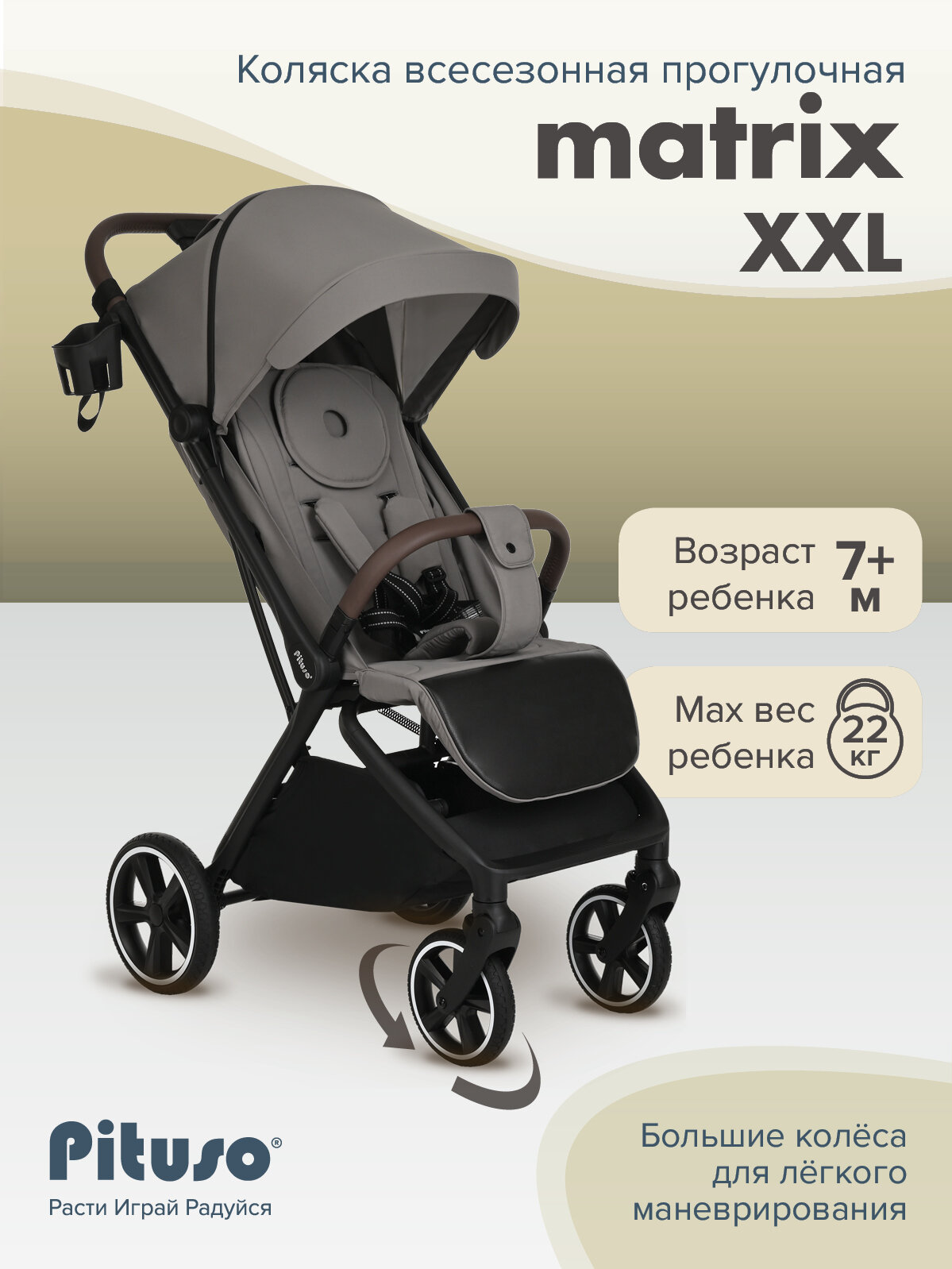 Встречайте Pituso Matrix на больших колесах. Современная cтильная прогулочная коляска с автоматическим складыванием и всеми атрибутами Pituso - лаконичный внешний вид и широкая функциональность. Это удобная, гибкая и надежная городская коляска, которая едет невероятно мягко и плавно. Легкое маневрирование достигается благодаря большим колесам с поворотом на 360 градусов, и даже самые активные маленькие путешественники смогут качественно отдохнуть благодаря раскладывающейся спинке и уютной подставке для ног, что создает как бы оазис для комфортных прогулок.