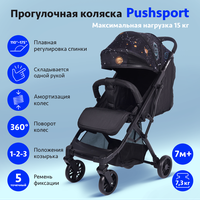 Прогулочная коляска Pushsport, черная, всесезонная, 1 место, 7,3 кг
