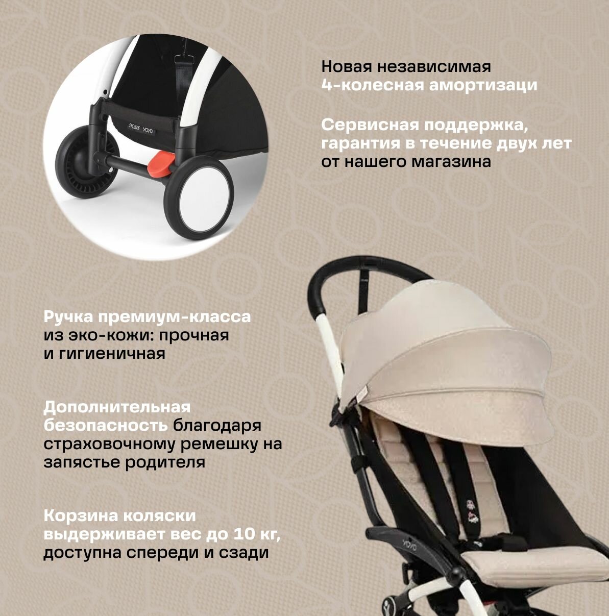 YOYO³ также потрясающе удобна и комфортна для вашего ребенка. Она оснащена мягкими и удобными сиденьем и спинкой, которые обеспечивают оптимальную поддержку и комфорт во время прогулок. Летняя коляска YOYO³ также отличается стильным дизайном. Она выполнена в элегантных тонах, которые подчеркивают вашу индивидуальность и стиль. Эта коляска станет не только надежным спутником ваших прогулок, но и стильным аксессуаром, который привлечет внимание окружающих. Гуляйте с малышом в удобстве и со стилем!