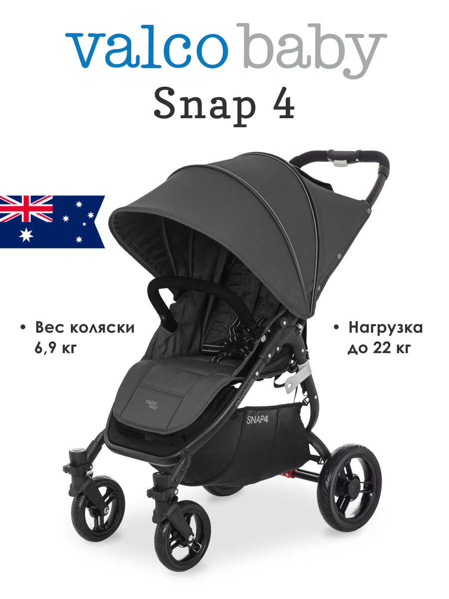 Valco Baby Snap 4 – универсальная коляска, которая предназначена для детей до 3-4 лет весом до 20 кг. Вас приятно поразит вес коляски - всего 6,9 кг! Капюшон с большой глубиной легко регулируется, выполнен из водонепроницаемой ткани, которая защищает малыша от ультрафиолетового излучения. Его можно расширить, т. к. имеется дополнительная секция под молнией. Ширина прогулочного блока позволит разместить малыша с комфортом даже в зимнем конверте, а удобная подножка для ног создаст все условия комфортной прогулки на улице. Поворотный бампер не создаст проблем при посадке и высадке малыша и не будет мешаться. Заднюю часть капа можно убрать и получить летний вариант коляски с тентом от солнца. Коляска маневренная благодаря передним поворотным колесам. Если вы едете по неровной поверхности, то можно их зафиксировать. Ручка коляски удобной формы и имеет ремешок для постоянного контроля. Коляска в сложенном состоянии занимает очень мало места и сможет разместиться в самом маленьком багажнике автомобиля, для большего удобства все колеса можно снять нажатием одной клавиши.