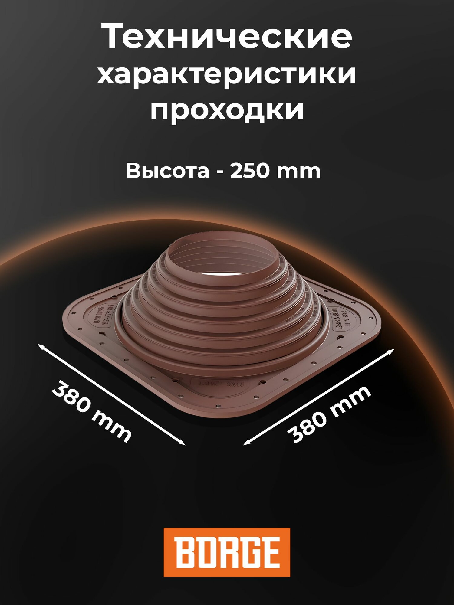 Проходка кровельная BORGE прямая №7 D152-279мм, фланец 380х380мм, коричневый: сравнение цен, характеристики, фото, актуальное наличие и цены.